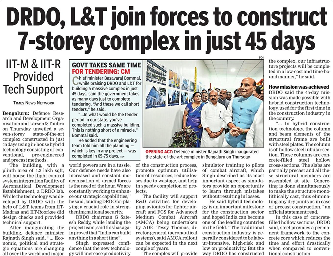 On a sultry evening of April, we were reviewing our sales plan at our H.O, and the phone buzzed from the Architectural team of Larsen and Toubro’s Buildings and Factories Division asking us to meet for an upcoming fast-track project – FCS Integration Facility at ADF–DRDO in Bangalore.